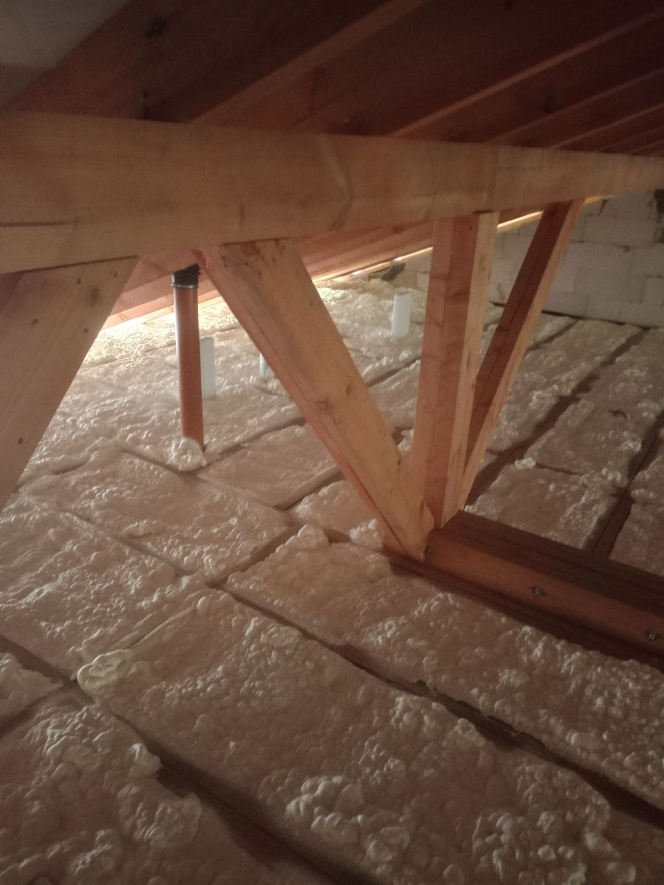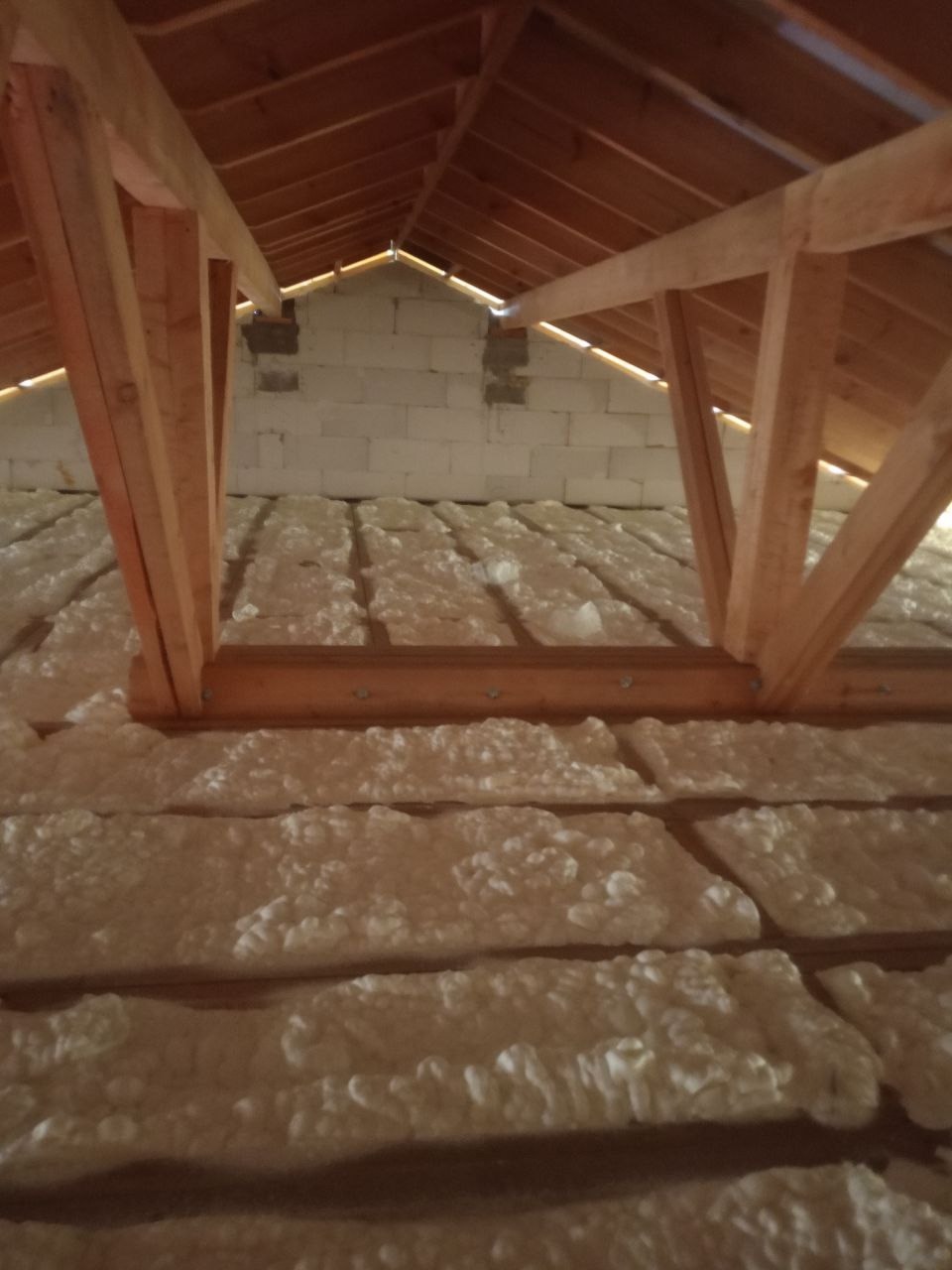 В деревне Вайялово, Гатчинского района, мы выполнили утепление перекрытия каркасного дома с мембранным основанием.