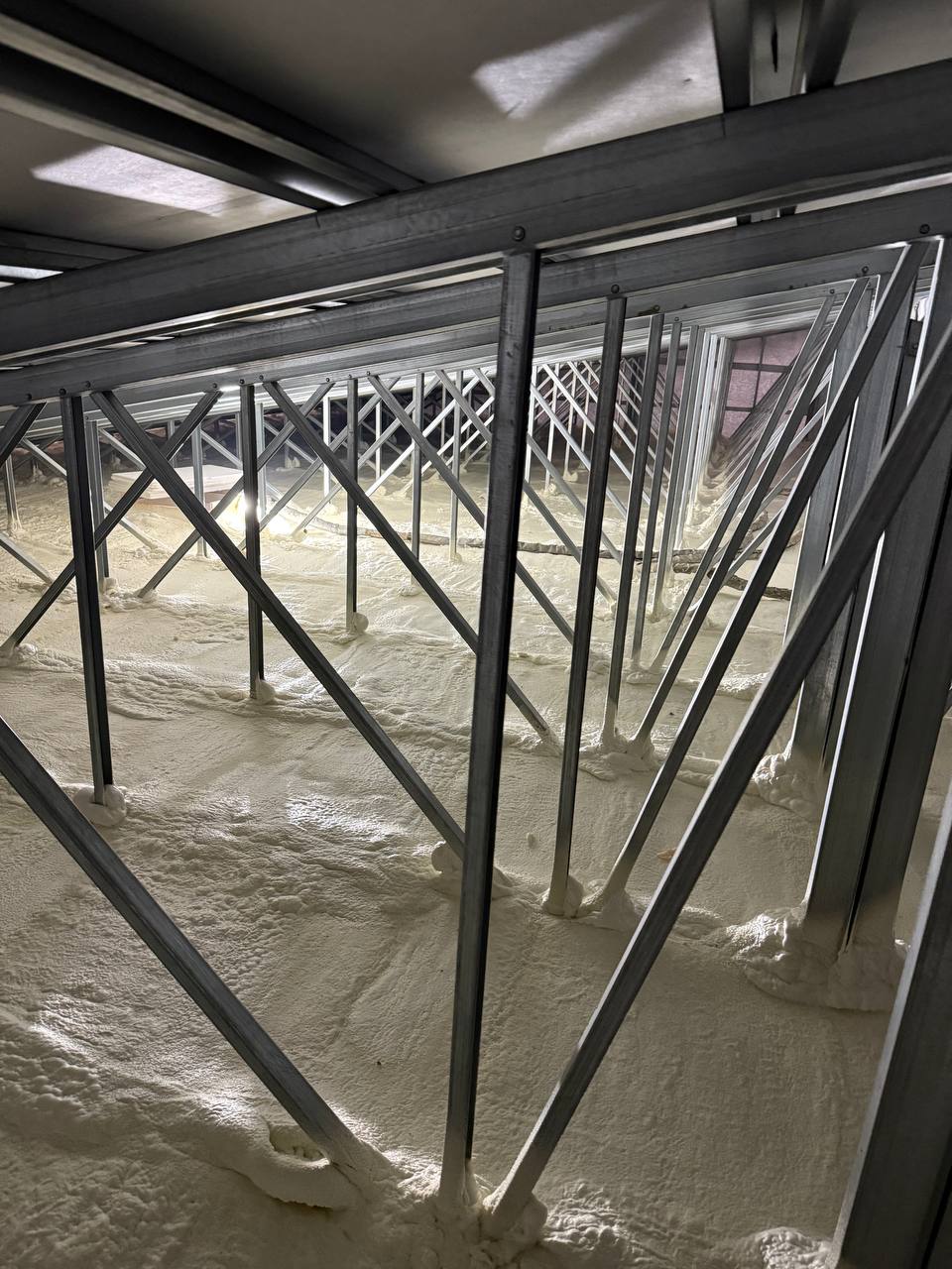 Решение: Мы применили технологию напыления закрытоячеистого пенополиуретана (ППУ). Толщина слоя составила внушительные 150 мм.