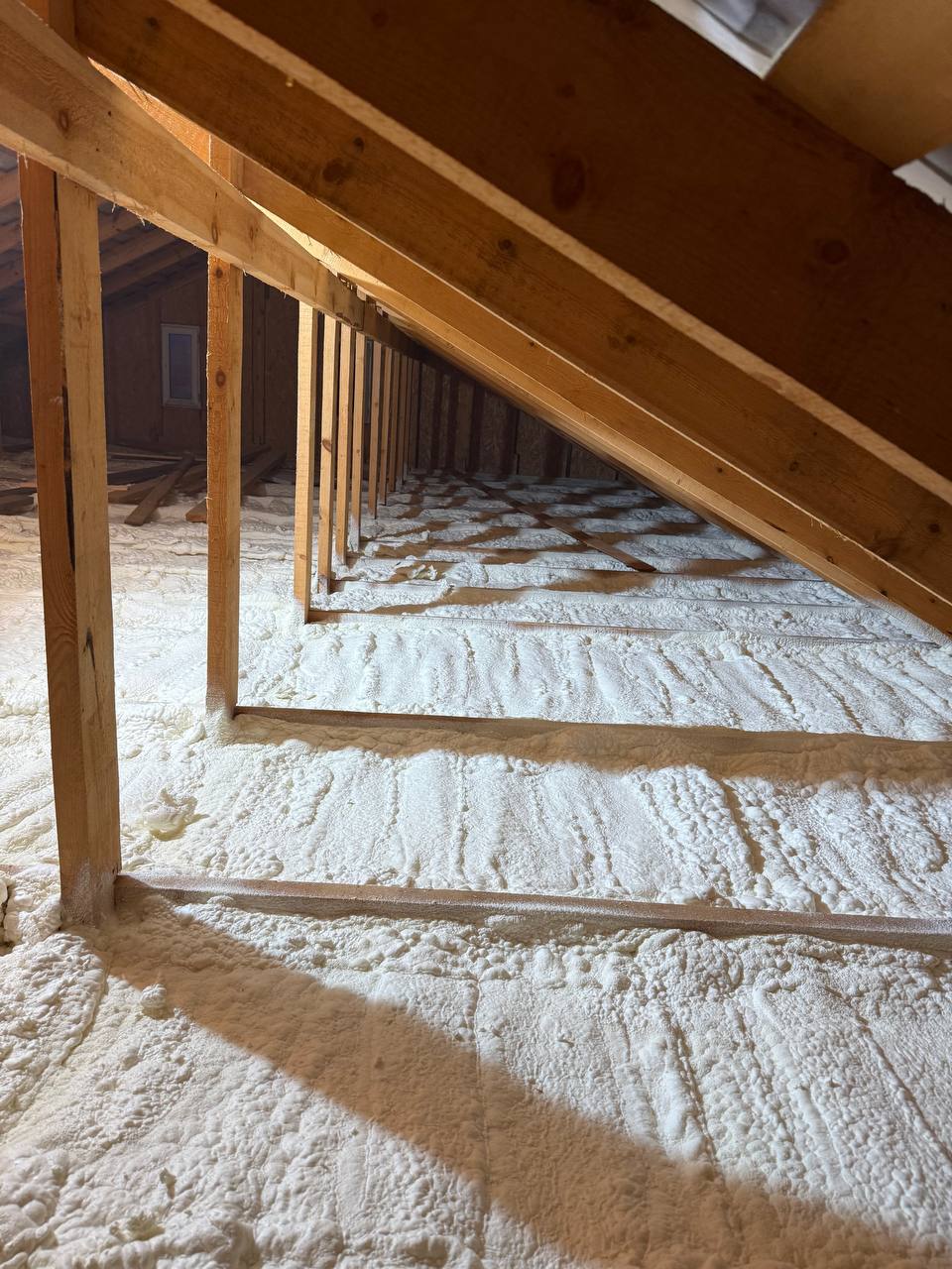 Дополнительно важно, что открытоячеистый ППУ остаётся паропроницаемым, позволяя конструкции "дышать", что особенно критично для деревянного основания.Бонусом повышается долговечность всей конструкции.В результате заказчик получил тёплое, стабильное по температуре помещение и уверенность в том, что перекрытие будет работать эффективно многие годы.А быстрый срок выполнения позволил пройти этап утепления без простоев и задержек по графику строительства.Расчитать стоимость утепления вы можете по номеру:+79210961111Или написав нам в телеграм: https://t.me/A_Corporation_ru