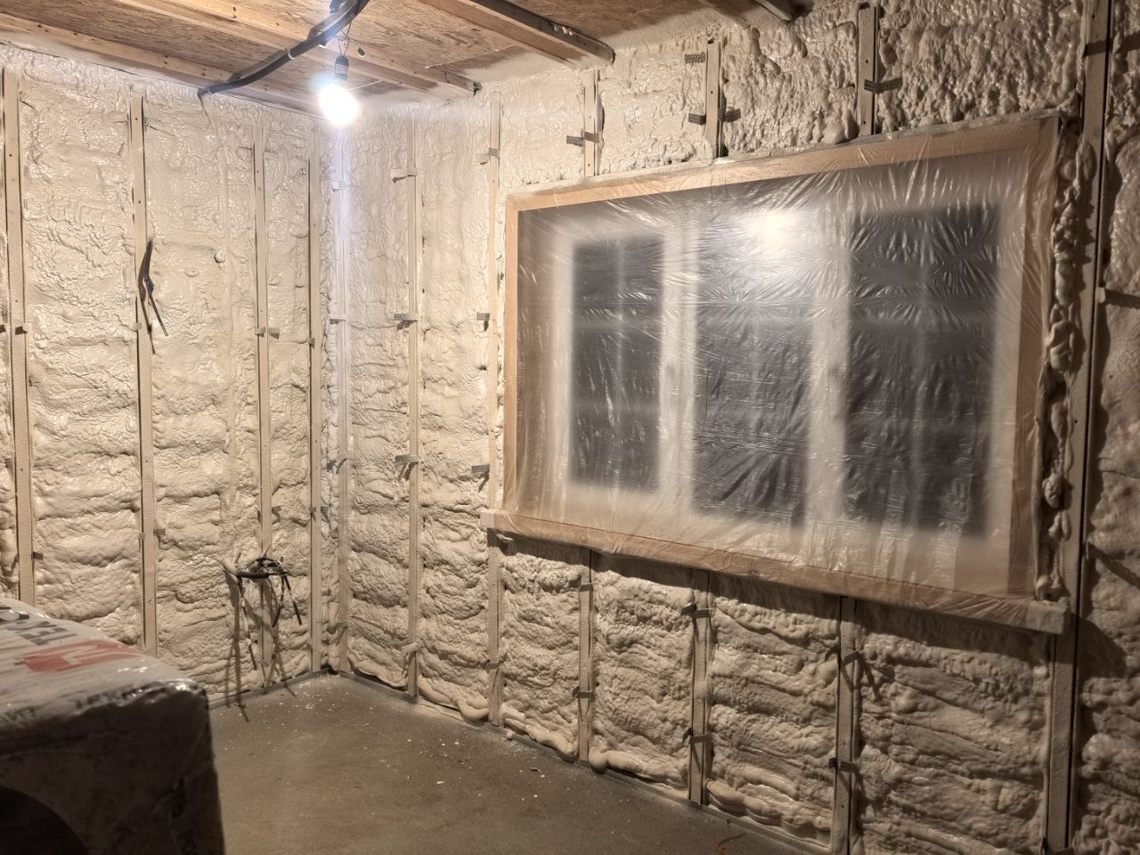 На стены мы нанесли слой закрытоячеистого ППУ толщиной 50 мм, использовав систему Primefoam с плотностью 40 кг/м3.