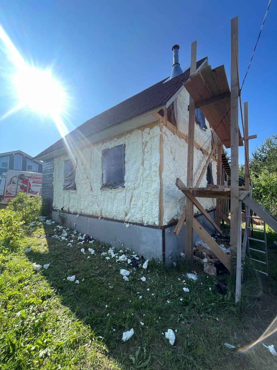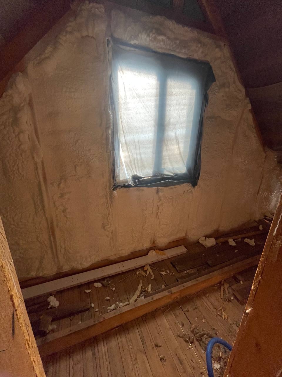 Открытоячеистый ППУ отлично "работает" на дереве — он буквально сцепляется с поверхностью, создавая плотный, бесшовный теплоизоляционный слой, который «дышит», но не продувается.