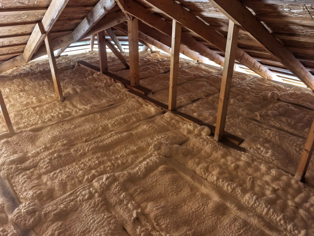 В этом проекте задача стояла чёткая: качественно утеплить чердачное перекрытие на OSB-плиту в каменном доме, чтобы минимизировать теплопотери через верхнюю зону. Мы использовали открытоячеистый ППУ толщиной 150 мм, плотность — 15 кг/м³. Общая площадь работ составила 101 м², а весь процесс занял всего один день.